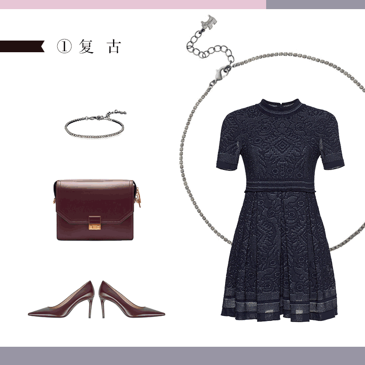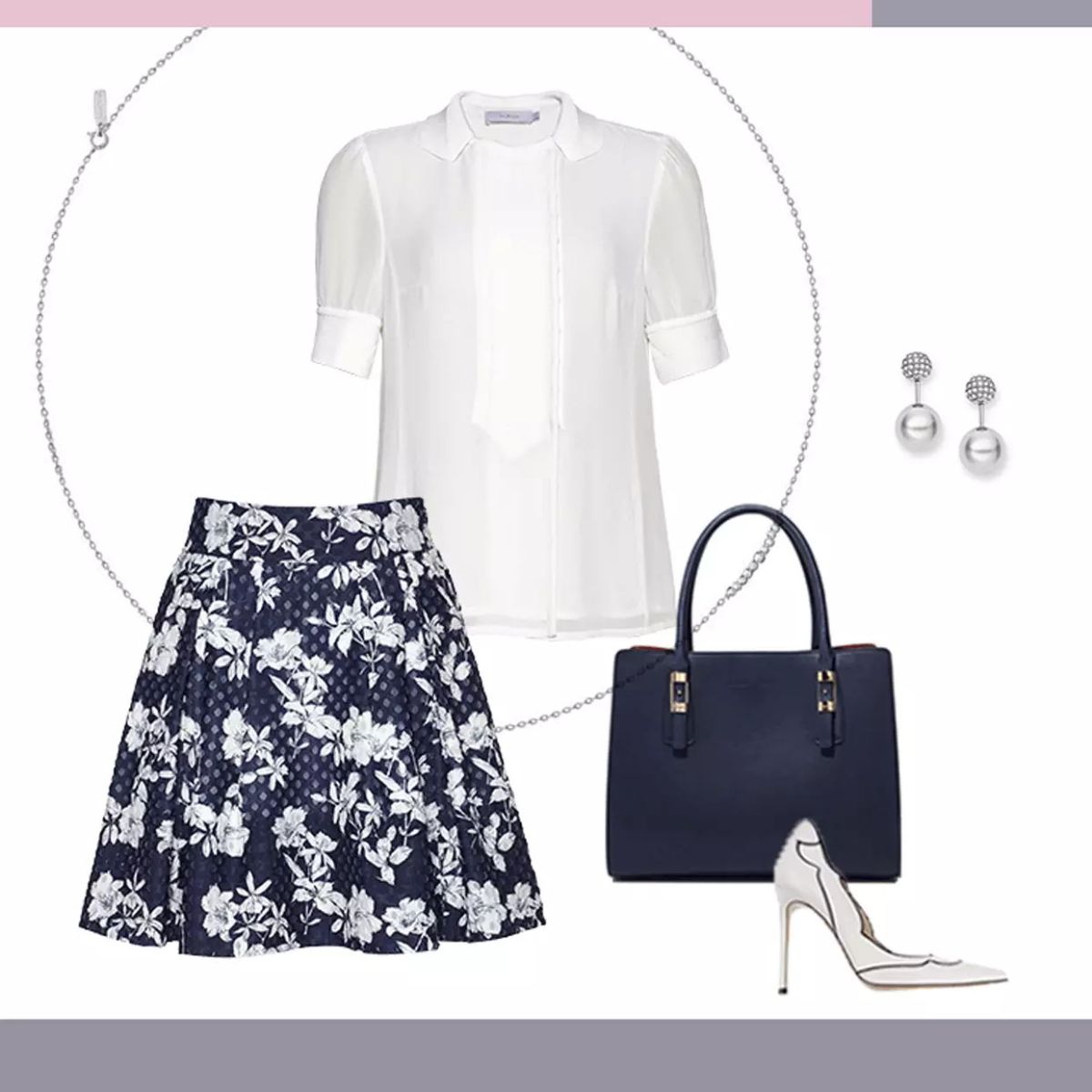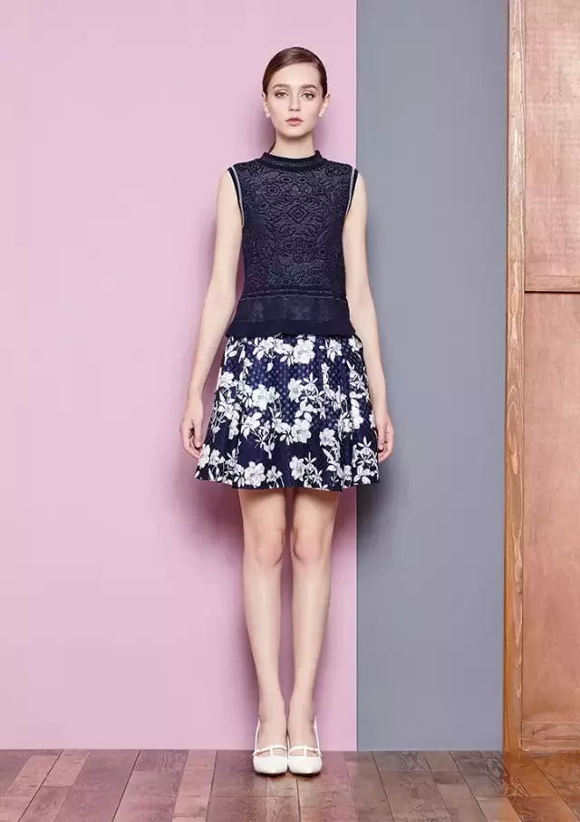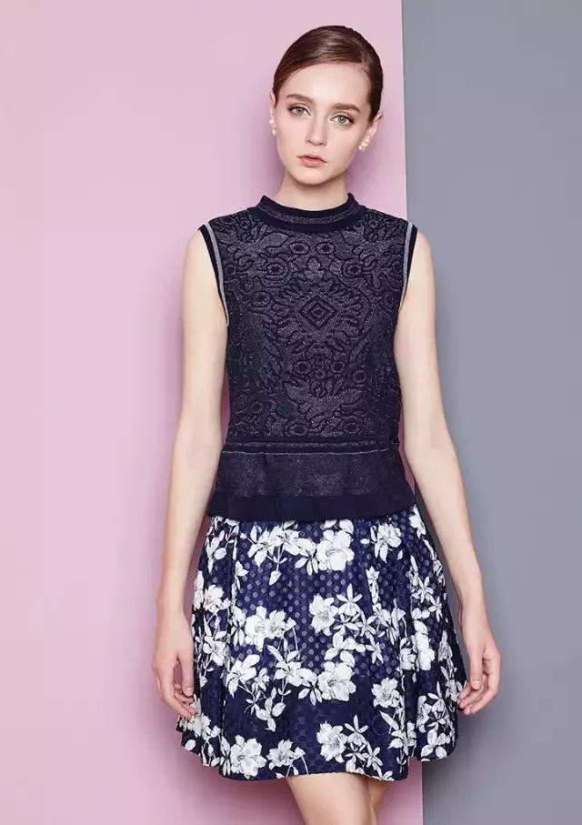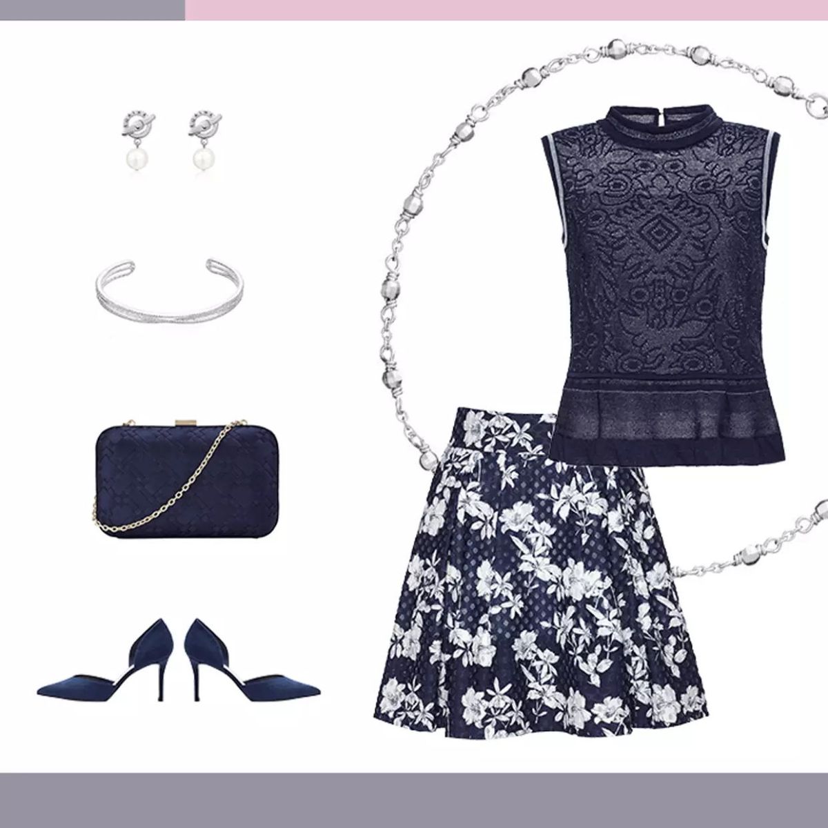 或张扬或内敛的深色印花,适合的场合绝不止于通勤,无论约会还是出街都是不二之选。同样深色的上衣搭配印花裙装,让整体造型不至沉闷,通透感十足。一袭藏蓝色装扮成熟优雅,又多了分俏皮小心机。