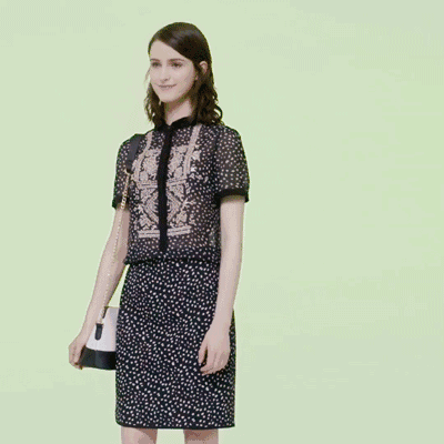 在H直身型的基础上延伸裙摆,这种微微的X廓形更符合人体工学。无论是曲线的造型感还是裙摆的弧度,都能让穿着者的身形最大程度的显瘦,具有收缩视觉的效果。