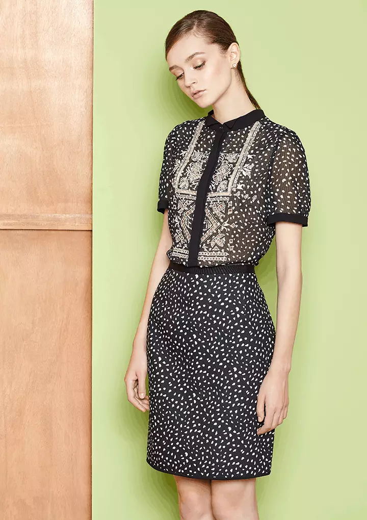 如果不喜欢大面积的黑色,又想显瘦,那么有图案的的服装最适合不过。短袖衬衣和包臀裙塑造出的S曲线,在款式的搭配上更加灵活多变。套装适用的场合也更加正式。短袖衬衣本来就是显瘦款之一,包臀裙能有效的束腰修饰臀型。大多时候略微修身的款式反而比宽松的款式更显瘦~