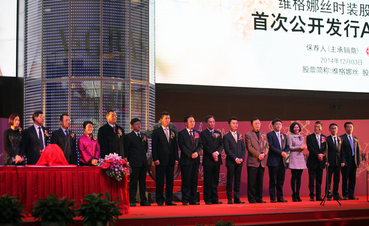 上市当天,维格娜丝时装股份有限公司董事长王致勤先生代表维格娜丝股份有限公司,向到场的各位嘉宾致辞。