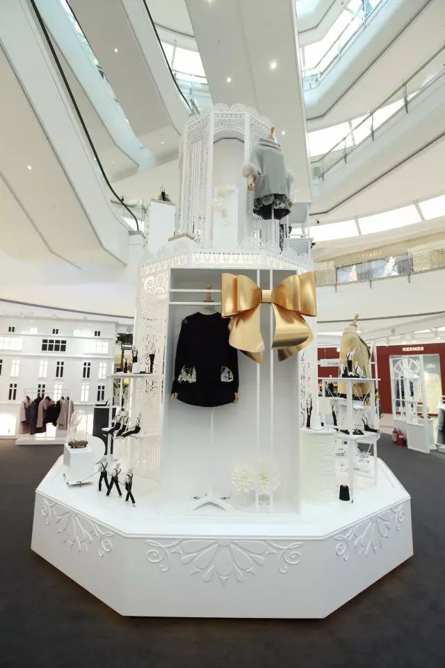 高达4.8米的匠心展示区,简约的欧式风格搭配典雅的白金色,辅以维美纸艺雕花的点缀,平和中彰显格调,优雅中愈见温暖。数百个上下飞窜奔忙的小木偶,逼真演绎VGRASS从设计手稿、立体剪裁到穿针引线的完整过程。