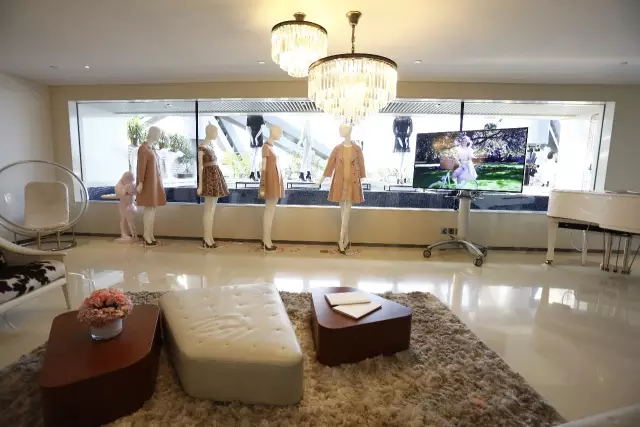 客厅里大幅春季形象海报与粉色系模特的组合搭配,具有修身效果的花瓣粉大衣和连衣裙,VGRASS跨越大洋彼岸带来的意大利柔软亲肤的高档羊绒面料,给寒冷的冬日午后增添了温暖的浪漫氛围。 .jpg)