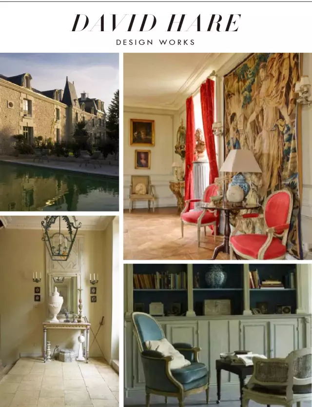 David Hare专注古典建筑设计领域20多年,设计作品覆盖欧洲古典城堡、荷兰公园、巴黎公寓。其建筑风格偏好新古典主义,以修复古老庄园别墅为主,注重细节上新旧的融合,擅长结合18世纪新古典艺术风格的家具,并巧妙的结合漆料运用使其焕然一新,散发出浓厚的艺术气息。
